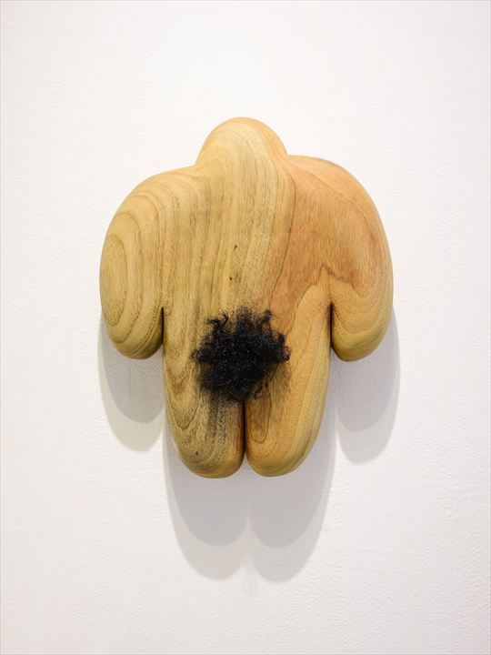 ビッグフット 2016 楠、つけまつげ、カシュー 以上、個展「つぼ」2017年 展示風景 (KUNST ARZT/京都) |