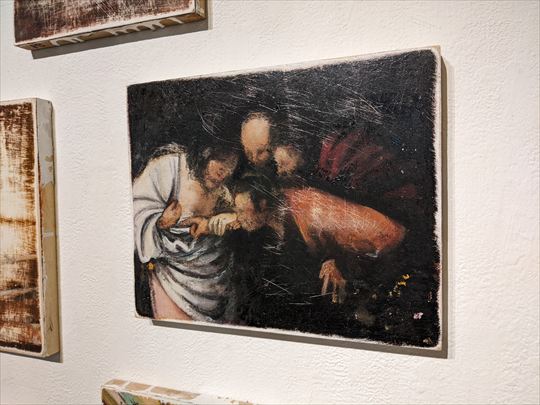 中橋 多恵子 個展 NAKAHASHI Taeko solo exhibition 2026年3月31日(火)から4月5日(日) 12:00から18:00 KUNST ARZTでは、3年振り、2度目となる 中橋多恵子の個展を開催します。 中橋多恵子は、クリスチャンとして、 宗教との関わりを油彩やモビールを用いて 考察するアーティストです。 キリスト教のイコンを油彩描写し、 それをサンドペーパーで傷つけ・・・、 信じることと疑うこと、といった アンビバレントな感情が混在し、 時には、燭や真鍮製のモビールを加え、 儀式的なインスタレーションを展開しています。 (KUNST ARZT 岡本光博) 展覧会コンセプト 「時間が経つと次第に薄れていく事実が 体のどこかで残り続け、 決して消えることのない存在として残っている。 それが日常で繰り返されている。 無関心のようで、時に疑問を投げかけたくなる 宗教や信仰の存在について、 特別な日常の肌触りを感じながら、 熱狂的な崇拝でも、完全な拒絶でもなく、 ただ「そこにある」という事実を留めていく。」 PRESS RELEASE NAKAHASHI Taeko (b.1991, Aichi pref, lives and works in Kansai) is an artist who examines her relationship to religion as a Christian through oil paintings of Christian icons and by damaging them with sandpaper. She earned her master's degree in painting course at Kyoto University of the Arts. |