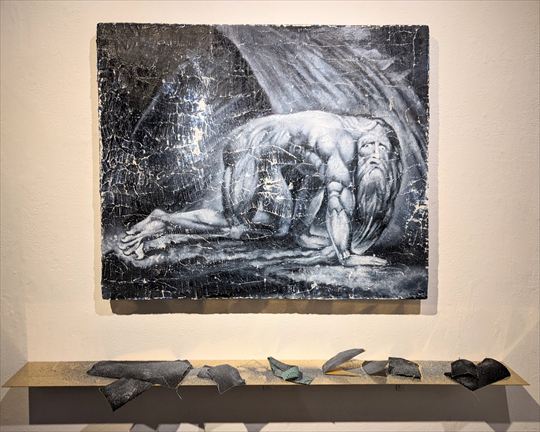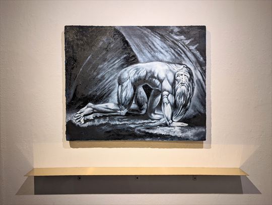 ネブカデネザル Nebuchadnezzar 2022-2023 540x650x40mm パネルに油彩、砂、サンドペーパー、真鍮板 Oil on panel, sand, sandpaper, brass plate |
