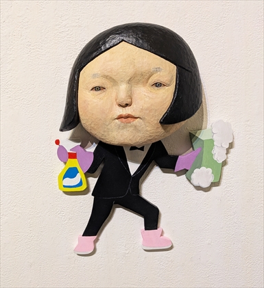 随行奏子 ZUIGYO KANAKO I am a Hero 2024 クスノキ、合板、アクリル絵具 27×32×8p ¥50,000 「007 (ジェームズ・ボンド)」×「お風呂掃除」 白人男性優位のスポーツか 有名ハリウッド映画の HEROイメージと家事の組わせた6作品の内の1つ。 |