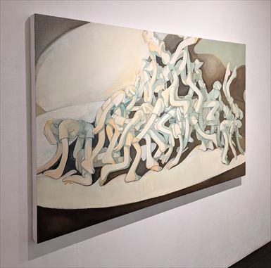 白いキャンバスを前に、自身の直感と向き合い、2023年からすでに80点もの連作を生み出しています。
