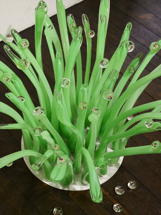 おもいいし 2014 ガラス、ウィッグ ed.3 180×150×150 |