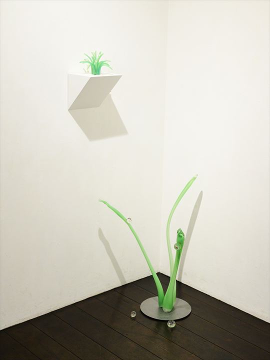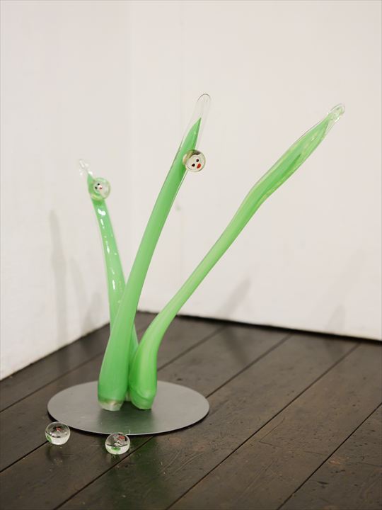 開脚 2018 楠、つけまつげ、カシュー 以上、個展「境界」2019 より |