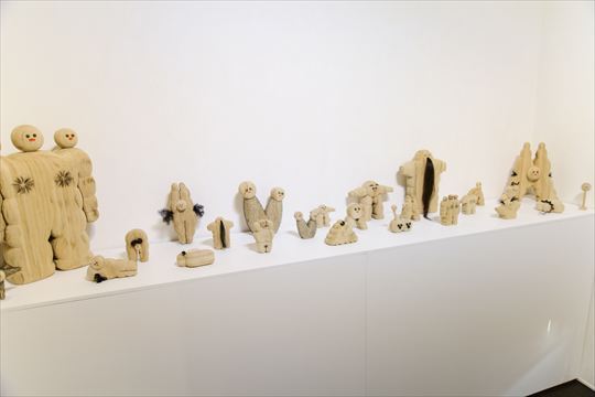 ビッグフット 2016 楠、つけまつげ、カシュー 以上、個展「つぼ」2017年 展示風景 (KUNST ARZT/京都) |