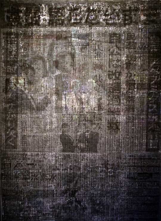 その日に発行された新聞の表面をひたすら重ねていく作品です。