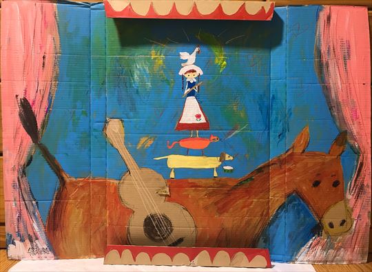 | ブレーメン(?)の音楽隊 2022 段ボールにアクリル 70 × 98 × 4センチ |