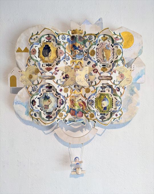 前野 藍 個展 きりおり模様の実験室 MAENO Ai Pattern of cut & fold lab 2024年10月1日(火)から6日(日) 12:00から18:00 KUNST ARZT では、2年振り2度目となる 前野藍の個展を開催します。 前野藍は、ペーパークラフトやポップアップ絵本に 見られる手法を使って、どこか懐かしい感じのする 半立体的世界を生み出すアーティストです。 紙を『切る』『折る』研究を続け、 オリジナルの構造形態を生み出しています。 そこに独特の描写センスで描きこまれた 無国籍な絵が加わることで、 唯一無二の世界となり立ち現れます。 本展では、ジャバラおりの作品たちが、 メインルームの空間を1周します。 作品を自由に手に取り、広げてお楽しみください。 (KUNST ARZT 岡本光博) PRESS RELEASE MAENO Ai (b.1981, Kyoto pref, lives and works in Kyoto) is an artist who creates semi-3-dimensional worlds that are rich in poetry and have a nostalgic feel. The stateless pictures drawn with a unique sense of description become a one-of-a-kind world through skillful paper crafting that incorporates the techniques seen in picture books. |