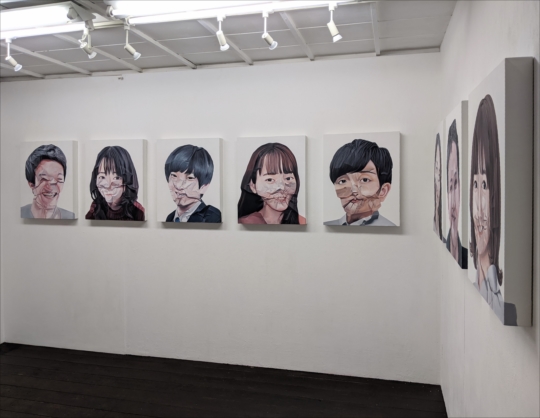 何だって分かる、自分のこと以外なら 2019 インスタレーション インターネット上で収集したポートレートを印刷し 変形させたものを描いたシリーズのインスタレーション。 匿名の他者のポートレートであり、 印刷物を描いた静物画でもある。 タイトルはフランソワ・ヴィヨンの詩、 「軽口のバラード」を引用。 |