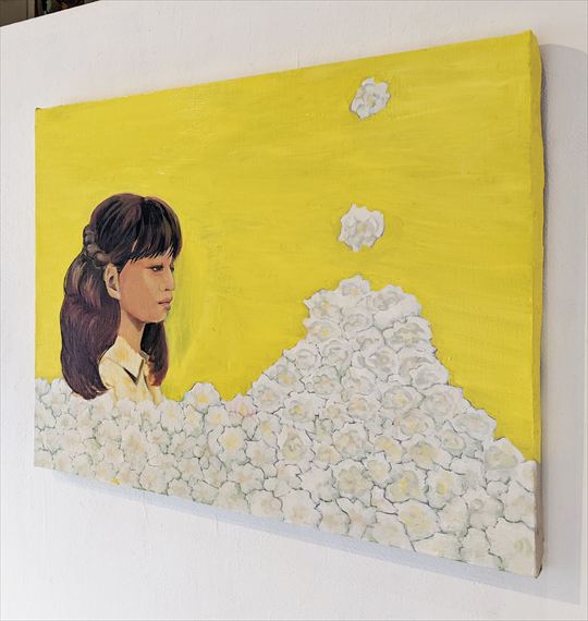 私は白い幸せの中を歩いてゆく。 2025 キャンバス 油彩 450×570×20 mm |