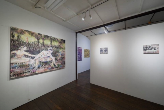 山羽 春季 個展 YAMABA Haruki solo exhibition The Green Table 2023年9月2日(土)から10日(日) 12:00から18:00 月休み KUNST ARZT では、2年ぶり5度目となる、 山羽春季の個展を開催します。 山羽春季は、舞や演劇、フィギュアスケーターの動きを 動画のコマ送りのように描き出す日本画家です。 脳内再生したイメージから、即興的に描いていきます。 近年は、祭事や信仰にまつわる活動機会に恵まれ、 その経験を生かした作品を展開しています。 本展は、戦時中の状況を反映し、 ドイツの振付師クルト・ヨースによる1930年代の 和平交渉の無益さを描いた反戦のためのバレエ 「The Green Table」をモチーフに展示構成します。 (KUNST ARZT 岡本光博) 展覧会コンセプト The Green Tableという反戦のためのバレエをモチーフに 展覧会をします。去年は桂六斎念佛を始め、できるだけ 舞踊を観に行く機会を増やしました。 バレエ、フィギュアスケート、神事にまつわる民族舞踊など、 生の公演をみて、それぞれの踊りが様々な文化的背景を もって作られたのを強く感じました。おめでたいハレの踊りと、 切実で社会的なテーマを込めた舞踊と、異なったアプローチの 公演を観ました。今回の個展では現実問題を含んだ暗の舞踊、 戦争など、現在も起こり続けている問題を描いたバレエを元に 展覧会をつくっていきます。 PRESS RELEASE YAMABA Haruki (b.1994, lives and works in Kyoto) is a Japanese painter who draws people's moving like a frame-by-frame advance. Figure Scate, Pina Bausch's play, dedication dance at shrines and temples and so on. She graduated from Japanese painting course at the Kyoto Seika University. |