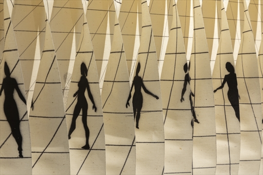 再帰/ネスティング Recursion/Nesting 2025 アクリル、スプレー、墨液、綿布 2000×710×230mm |
