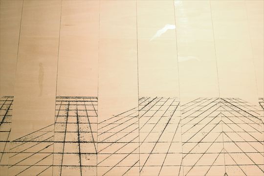 送還/目算された水平線 Repatriation/Estimated Horizon 2025 スプレー、墨液、パネル 865×470×40mm |