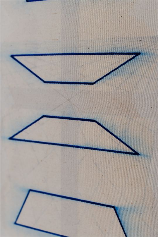 観測/視座に座る Observe/go to viewpoint 2024 スプレー、ペン、綿布 spray, pen, cotton cloth 700×800x70mm 以上、個展「さわる/不可侵領域」 2024 photo by TERAOKA Kai |