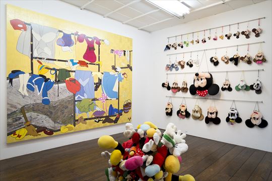 | 展覧会について 「ディズニー」をテーマにした展覧会です。 ディズニー社は、世界一のエンターテインメント企業であると同時に、 米国の著作権延長法が「ミッキーマウス延命法」と揶揄されるように、 著作権管理の厳しさでも世界一かもしれません。 しかも、今やピクサー(カーズほか)のみならず、 マーベル(スパイダーマンほか)、ルーカスフィルム(スターウォーズほか)も 傘下に収め、ディズニー以外のキャラクターもディズニー社が その権利を持つという状況になっています。 そのディズニー社が一方的に送り続けるイメージを、我々は受け取り、 脳裏に焼き付けられ、消費し続けることしかできないのでしょうか? いや、アートは唯一、社会に“イメージ”を突き返すことのできるものです。 しかも、ユーモアや思いもよらない視点のおまけ付きです。 本展にディズニー社を批判する意図はありません。 アートの力を試す場であると考えています。 岡本光博 (本展企画者/美術家/KUNSTARZT主宰) |