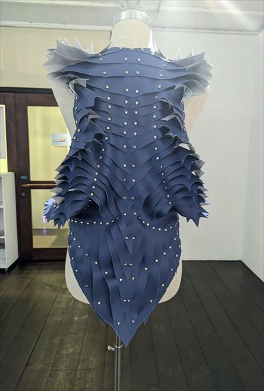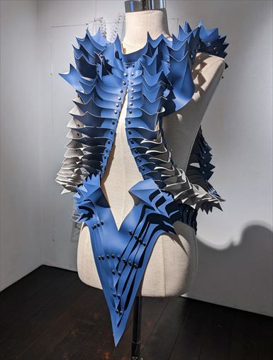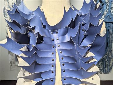森田樹 MORITA Itsuki utw-2 2026 合皮、カシメ synthetic leather, rivets 44×78×35cm \ 55,000 ed.3 トゲのある貝のフォルムから 構想したファッションピース。 アニメ的戦闘服+エレガント は唯一無二かと。 |